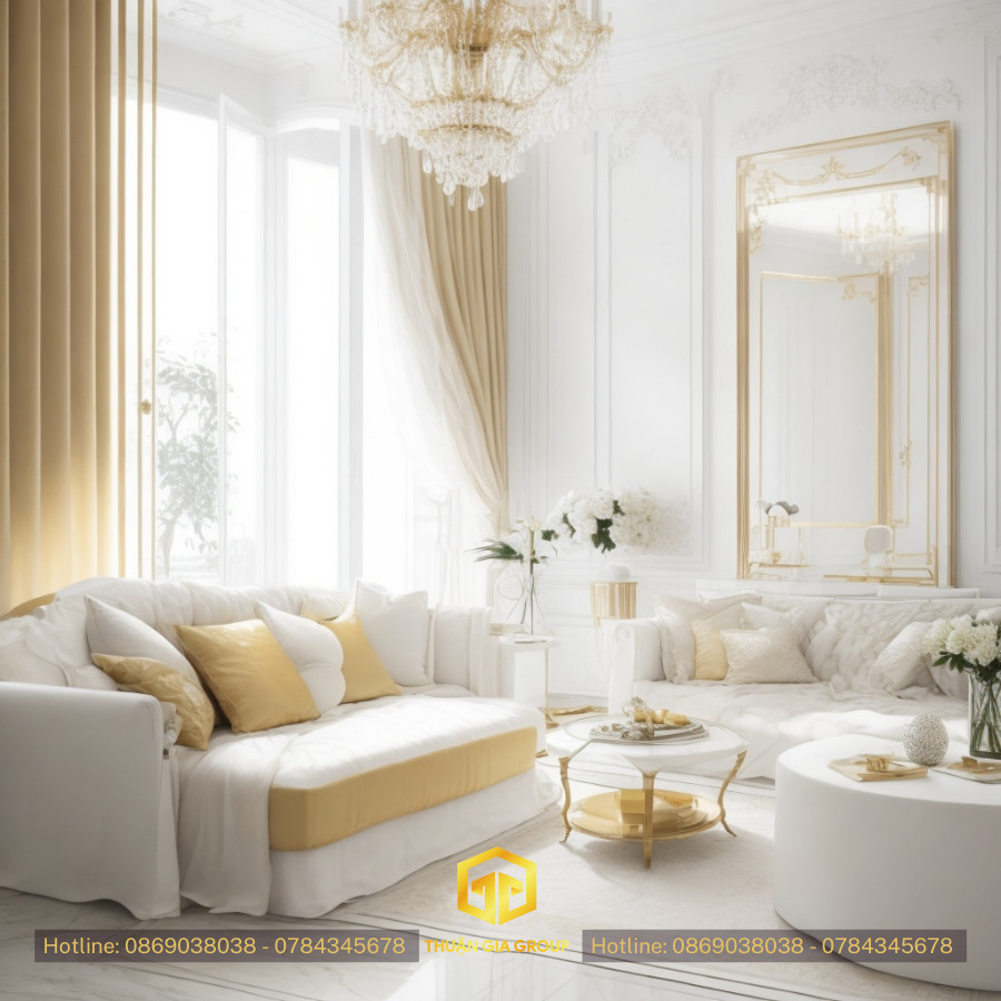 Sự Hòa Quyện Giữa Sang Trọng không gia săn nhà và màu sắc đẹp mắt, kết hợp tone màu trăng, vàng ánh kim, Nội thất thận thiện