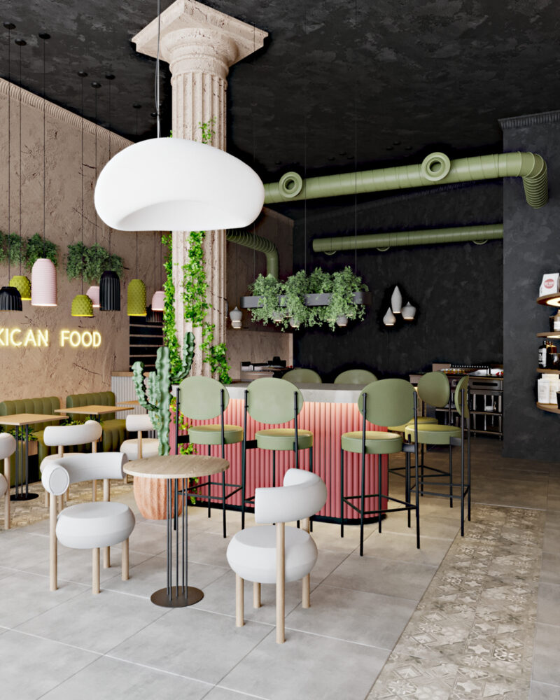 – Quán cafe ấn tượng được thiết kế theo phong cách xương rồng trên sa mạc, với tone màu chủ đạo là trắng gà và xanh lá cùng với sự bố trí bắt mắt về nội thất đã tạo nên điểm độc đáo và cá tính cho quán.